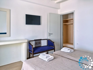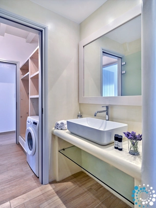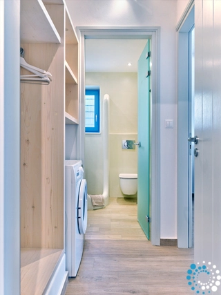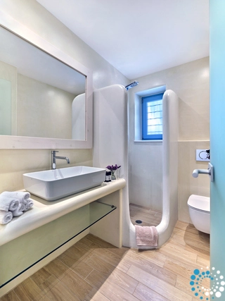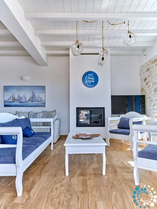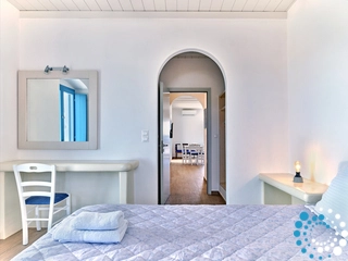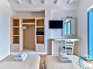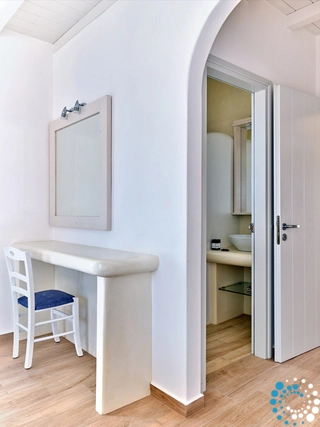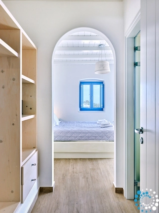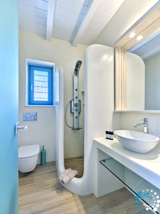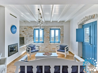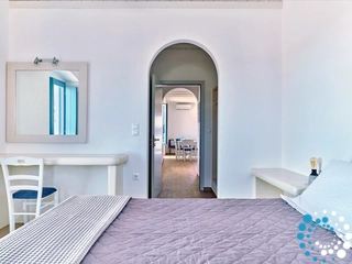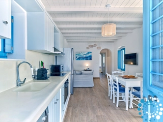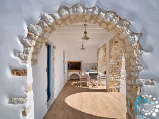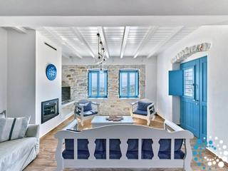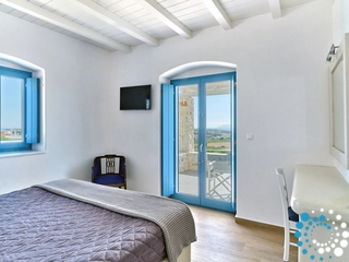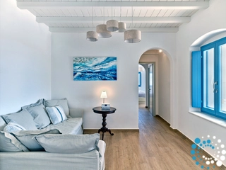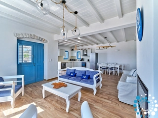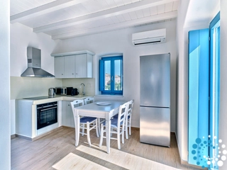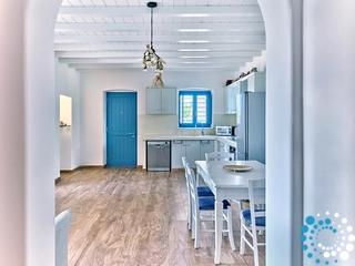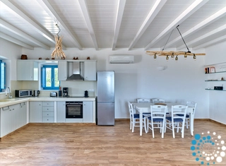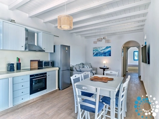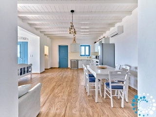 It has spacious verandas overlooking the sea, shaded by traditional wooden pergolas in front of the dining room and the bedroom. It is furnished with traditional Cycladic furniture and it is fully equipped with all modern amenities (home appliances, TVs, air conditioning, free WiFi).