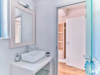 Villa Callia has 2 floors: on the ground floor there is a dining/living area, a kitchen and 2 bedroom/suites. The upper floor is an independent suite with a double bedroom, bathroom, kitchen and dining corner, and private veranda.