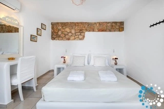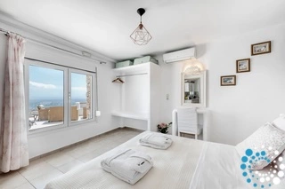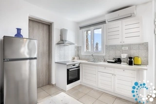 Step inside to discover a serene bedroom with a queen-size bed, a cozy living room featuring two plush sofa beds, and a fully equipped kitchen. The spacious, modern bathroom includes a sleek built-in shower. Step outside to your private oasis, where an inviting pool awaits amidst stunning sea views. Relax on sun-drenched loungers and savor moments of pure bliss while gazing at the mesmerizing scenery all around.