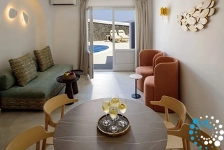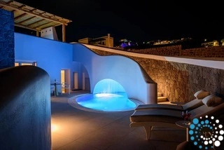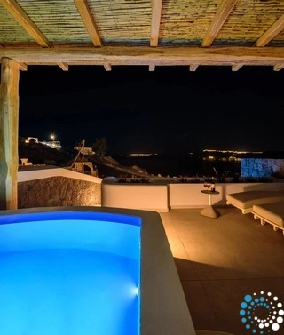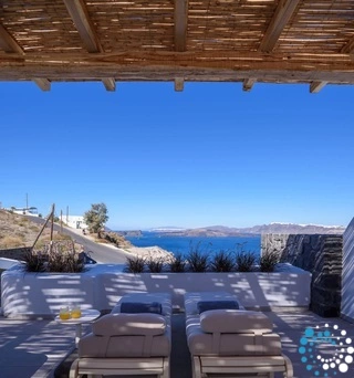 At the outside yard, the guests can enjoy a dive in their private pool and then lie back on the deck chairs around it, under the sun. A private jacuzzi could not be amiss from this beautiful villa; it is located on the roof providing relaxation and a stunning view of the Akrotiri Caldera and the volcano.
