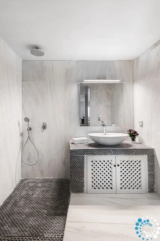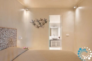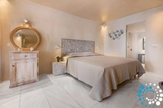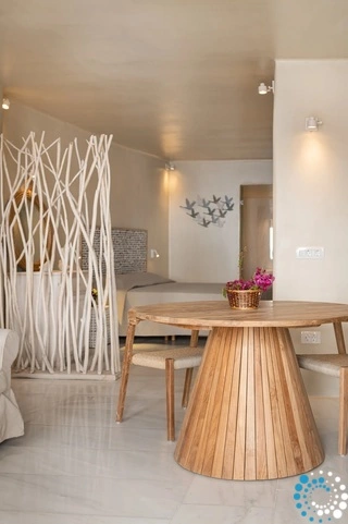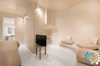 Seamlessly integrated into the volcanic landscape, each villa combines classic Cycladic architecture with modern elegance. Guests can unwind in spacious living areas, enjoy a hydro-massage bath or shower, and stay comfortable year-round with individually controlled air conditioning and heating.