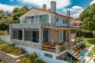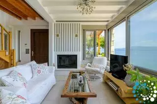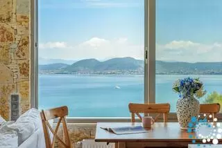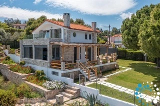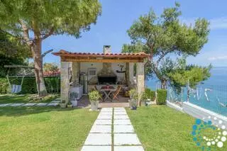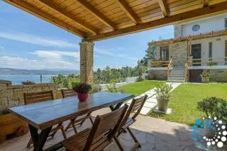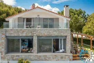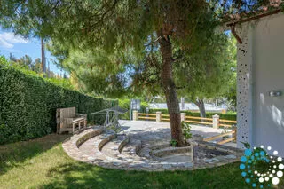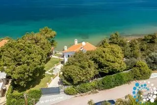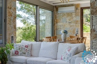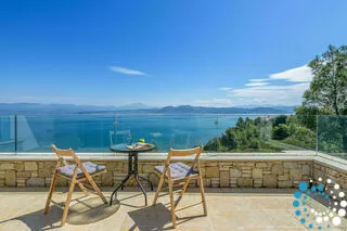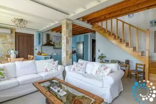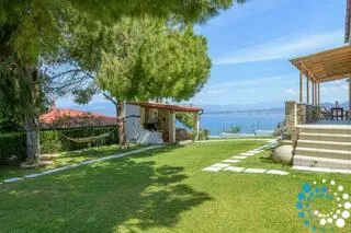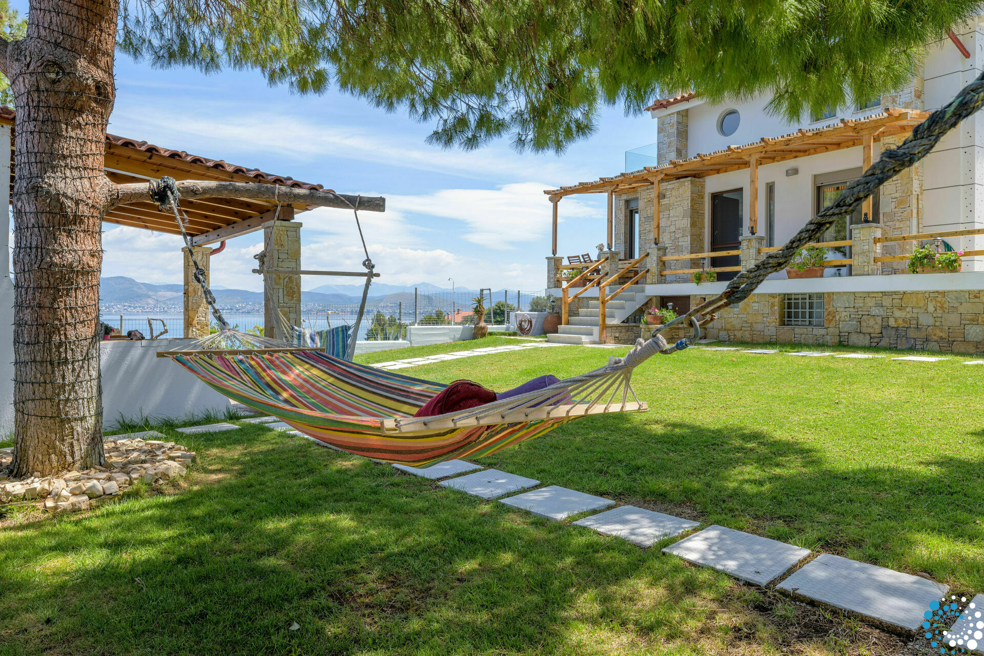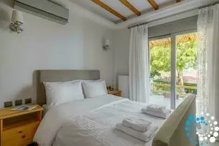 Surrounded by an expansive, lush garden, this stunning retreat offers a serene escape where comfort meets natural beauty. Cozy seating areas shaded by elegant sun umbrellas invite you to relax and unwind, whether you're enjoying a peaceful afternoon or gathering with loved ones. Step onto the infinity view terrace and let your eyes wander over the shimmering Aegean Sea—an idyllic setting for savoring your morning coffee or toasting to a breathtaking sunset.