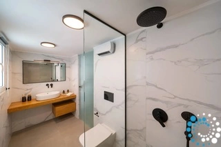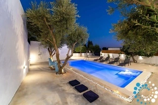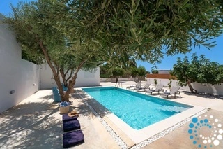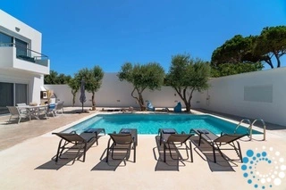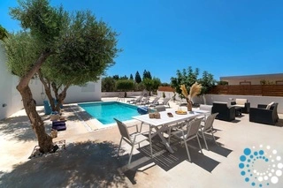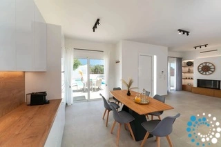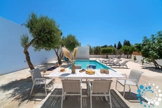 Villa Cistus is a sophisticated retreat featuring three generous bedrooms on the first floor, each furnished with a luxurious king-size double bed. Two of the bedrooms include ensuite shower facilities, while an additional WC on the ground floor provides extra convenience. The fully equipped kitchen makes cooking effortless, complemented by a chic indoor living area perfect for relaxation and socializing.