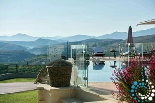 The outdoor area of Villa Daisy is designed to impress, offering a variety of spaces for relaxation and enjoyment against a backdrop of breathtaking views. A 50 sq. m. ecological swimming pool with a counter-current system provides hours of fun and can be safely fenced for children. Outdoor dining is made easy with a fully equipped area featuring a charcoal barbecue, wood oven, gas cooker, fridge, and sink. Guests can lounge on sun beds, deck chairs, or outdoor sofas, while children have a dedicated playground in the lush garden. An outdoor bathroom next to the pool adds convenience, and a private underground garage ensures secure parking. The entire outdoor space is fully fenced, offering complete privacy for a tranquil and luxurious retreat.