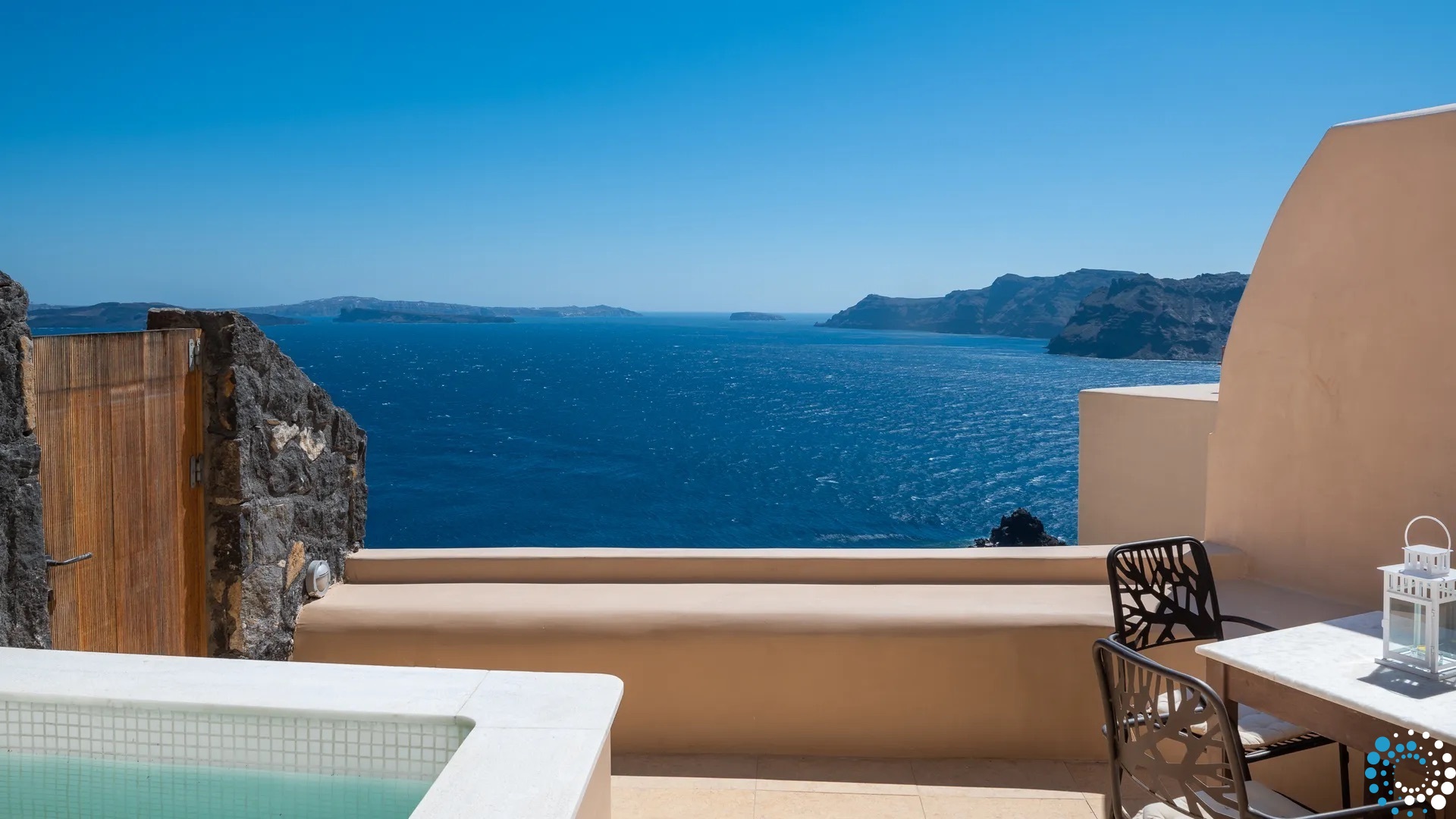 Perched 650 feet above sea level on the breathtaking cliffs of Oia, Villa Echo is part of an exclusive collection of Cycladic villas, each offering private outdoor hot tubs or pools with sweeping views of the Caldera and the sparkling Aegean Sea.