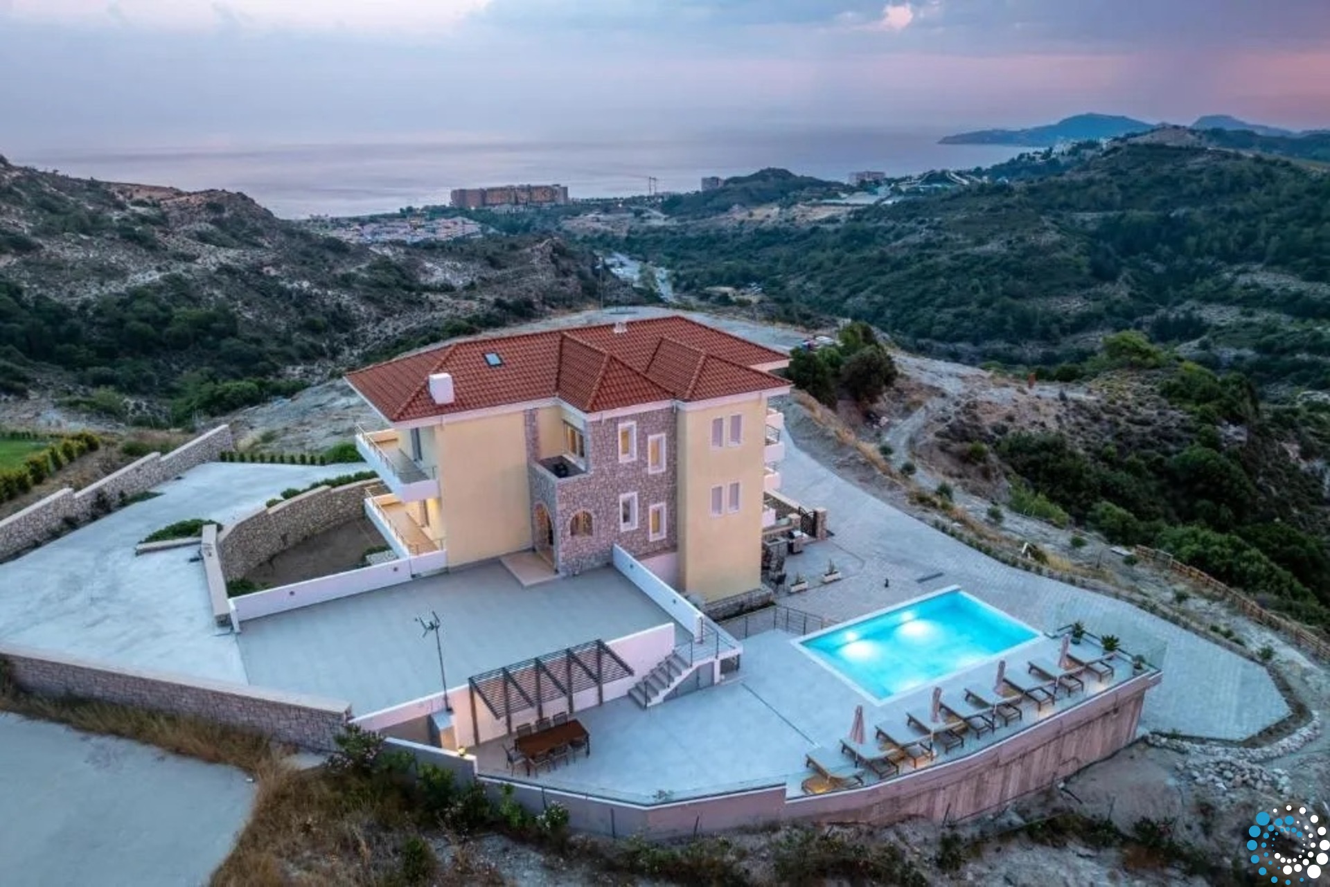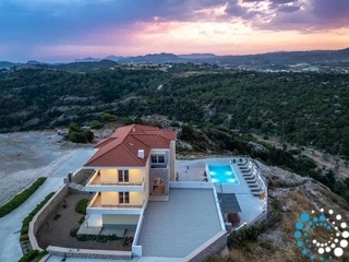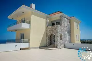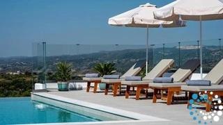 Every floor opens to a private balcony that captures the magnificent views of the Aegean Sea. From here, you can watch the sun sink below the horizon in a symphony of colors, creating unforgettable moments each evening. Outside, a sparkling private pool invites you to unwind and immerse yourself in the tranquil ambiance of the villa’s surroundings.
