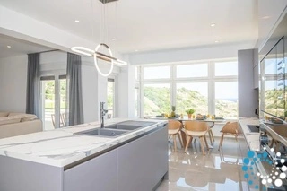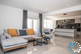 The villa has one main entrance to the building, but each level features its own private door, allowing both floors to function as entirely self-contained homes. Inside, each level offers a fully equipped gourmet kitchen with premium appliances, a stylish dining area for gatherings, and an inviting living room designed for pure relaxation. Three beautifully appointed bedrooms provide generous closet space and a peaceful atmosphere, while the bathrooms—one full and one half bath per level—add a touch of convenience and elegance.