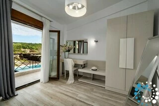 Just minutes away lies the traditional fishing village of Skioni, with its charming harbor, shops, cafés, tavernas, supermarkets, and pharmacies—providing everything you need for a comfortable stay. For those seeking lively evenings, the nearby resorts of Polychrono and Pefkochori offer vibrant nightlife, from beach bars to clubs.