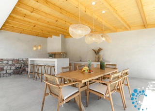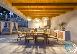 Step outside into your private oasis. The sparkling pool invites you to cool off during warm Rhodes afternoons, while the surrounding deck is perfect for lounging, sunbathing, or simply enjoying the serene ambiance. The lush garden provides a tranquil escape, ideal for a morning coffee or an evening glass of wine. A BBQ area and a charming outdoor dining space allow you to savor delicious meals under the Mediterranean sky.