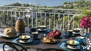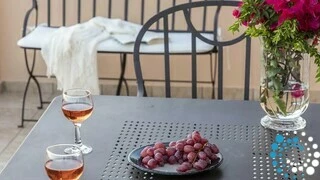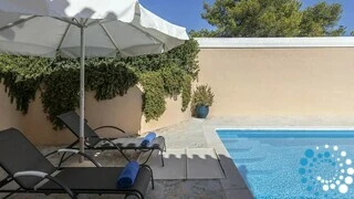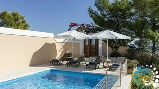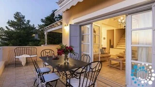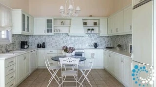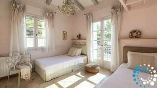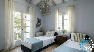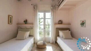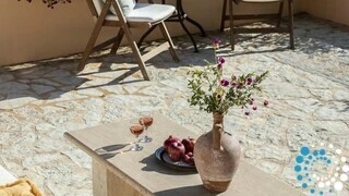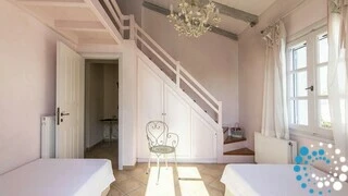 Spread across two elegant levels, Villa Eumorphia has been thoughtfully crafted to accommodate families or groups with ease. The villa features two spacious double bedrooms and two additional bedrooms with twin single beds, one of which includes an attic-style sleeping nook with a cozy double mattress suitable for two children or one adult. Three beautifully appointed bathrooms serve the living spaces, while a fully equipped kitchen and a welcoming living room ensure comfort and practicality throughout the stay. Every detail has been considered to create a relaxed and seamless living experience.