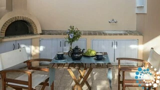 Life at Villa Eumorphia extends naturally outdoors, where guests can savor meals in either the covered or open-air dining areas. The private swimming pool, framed by stunning views, offers a refreshing retreat on warm summer days, and the outdoor barbecue area with a traditional wood-burning stove sets the stage for unforgettable evenings under the stars. With convenient parking available both inside and outside the property, Villa Eumorphia delivers a holiday experience that balances privacy, comfort, and lasting memories.
