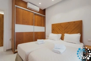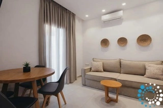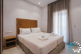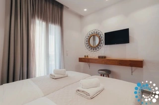 Spacious and elegantly designed, our 40 sqm Villa Euterpe with sea view accommodates up to three adults, offering a relaxing escape with modern comfort. The suite features two cozy single beds along with a comfortable sofa that easily converts into a sofa bed. Step out onto your private terrace and enjoy serene views of the shared pool and the sparkling sea beyond—perfect for peaceful mornings or unwinding at sunset. With direct access to the shared swimming pool, this suite blends contemporary style with effortless leisure, creating a refreshing retreat for your stay.