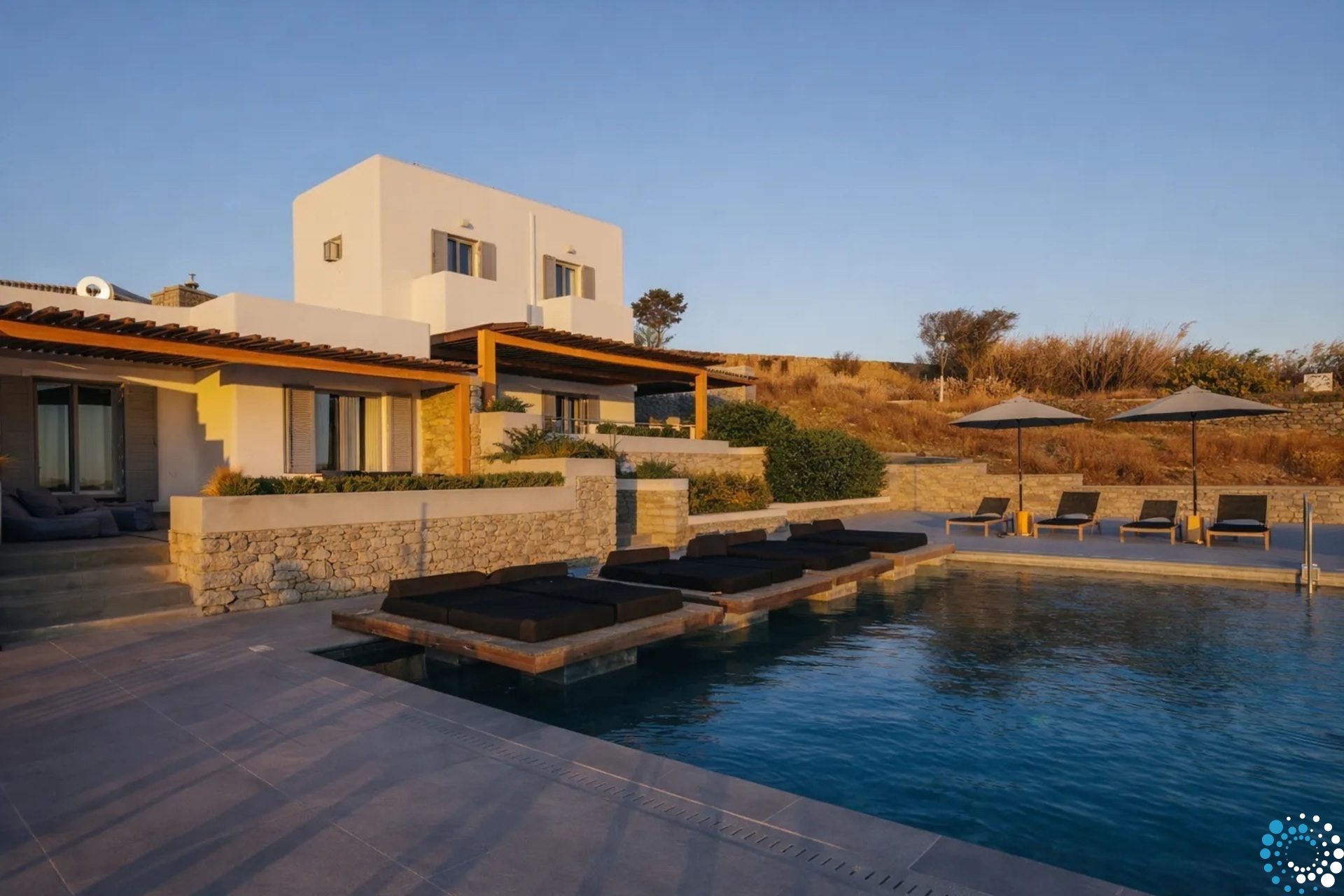 Set in a quiet and secluded location with unparalleled panoramic views of the Aegean Sea and the iconic Mykonian sunsets, this luxurious complex is perfect for moments of absolute serenity, peace, and tranquility, away from the crowds. Built according to local architectural standards, the newly constructed villas complement their natural surroundings and are in perfect harmony with the land of Mykonos, honoring Cycladic architectural forms. The complex includes luxury villas and suits, ideal for couples, groups, and VIPs seeking refined luxury, modern amenities, and personalized service at every moment of the day.