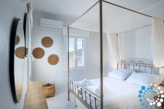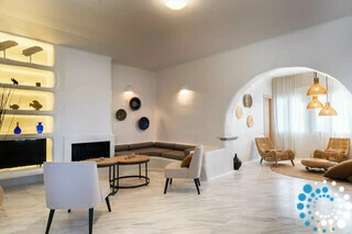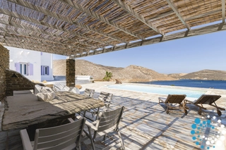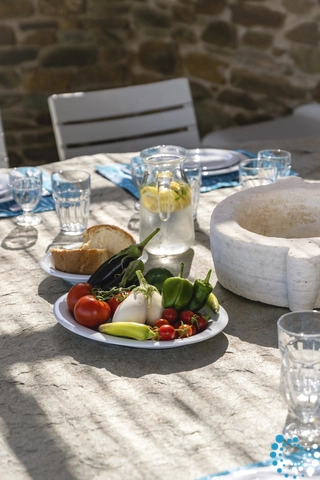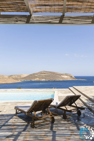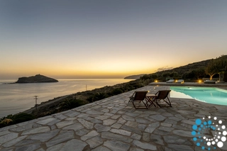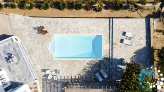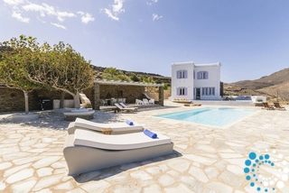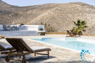 The villa accommodates six guests (up to eight) in three ensuite bedrooms, with spacious living areas opening to shaded terraces and an infinity-style pool overlooking the Aegean. The position offers uninterrupted sunrise views and protection from the northern wind, while remaining only twenty minutes from Tinos Town and local beaches. Linen and housekeeping are provided at least twice weekly, with daily pool maintenance included. Private-chef or catering services can be arranged upon request. The house is ideal for families or groups seeking privacy, simplicity, and direct contact with the island’s landscape.