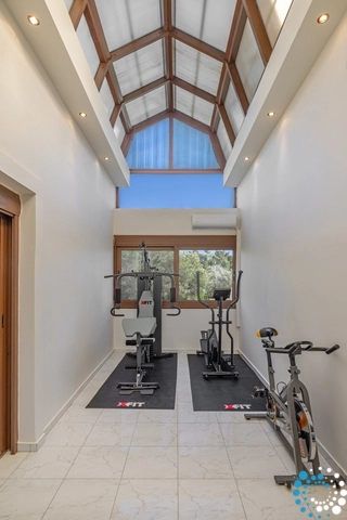 Villa 1 (500m²) exudes elegance with its spacious living areas, adorned with luxurious Italian Fendi furnishings. The ground floor features two living rooms, a dining area, a fully equipped kitchen, and a WC. On the first floor, you will find four large bedrooms with double beds, two of which also include a sofa bed or a single bed. One bedroom includes an en-suite bathroom with a shower, while a separate bathroom with a bathtub is also available. A gym area, equipped with all the necessary tools, sits between two of the bedrooms. On the second floor, the master bedroom offers a king-size bed, an en-suite bathroom with a bathtub, and stunning views.
