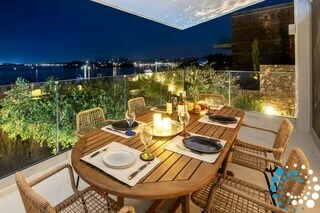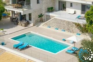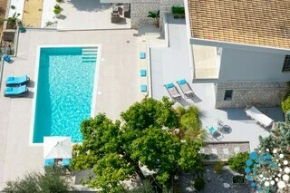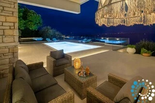 The luxurious pool at our villa is a centerpiece of elegance and relaxation, offering an unparalleled experience for our guests. Designed to harmonize with the natural beauty of Kommeno, the pool is filled with crystal-clear seawater, providing a refreshing and invigorating swim reminiscent of the pristine Ionian Sea.