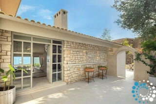 Adding to the villa’s allure is its private access to the sea. A short path leads directly from the property to the water’s edge, allowing guests to effortlessly transition from poolside relaxation to a dip in the Ionian Sea. This exclusive feature ensures privacy and convenience, making it easy to explore the clear waters, enjoy a morning swim, or go the distance in the open waters and get a great workout in.