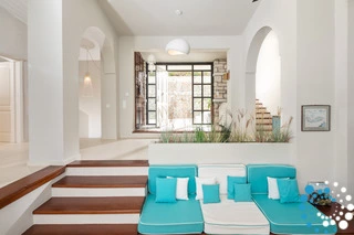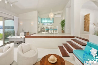 The upper floor also includes a spacious sitting room and a dining area conveniently located near the main kitchen. From the sitting room’s balcony, guests can enjoy beautiful views, making it an ideal spot for afternoon relaxation or late-night conversations.