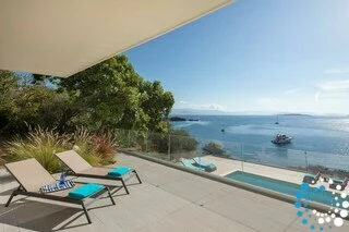 This exquisite pool area is complemented by comfortable loungers and shaded areas, perfect for basking in the sun or enjoying a cool drink as you take in the breathtaking panoramic views of the sea. The gentle sound of the waves and the soothing ambiance make it an ideal spot for unwinding and escaping the hustles of daily life.