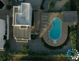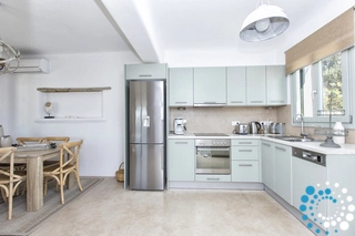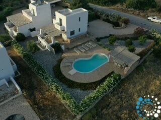 The main level includes a fully equipped kitchen, an open plan spacious living room, dining area, vanity room and washing machine. On the main level you will also find access to the outdoor dining area and access to the swimming pool. Villa Galasia has an eye for taste with all interior and exterior furnishings chosen for guests to enjoy and relax.