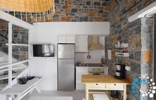 The ground floor features a cozy living area with two sofa beds, a fully equipped kitchen, and a bathroom, while the loft hosts a comfortable double bed. Handcrafted wooden furnishings add a warm, traditional touch, creating a serene and inviting retreat.