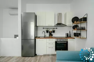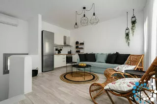 The villa comfortably accommodates up to five guests. On the main level, there is a lovely terrace with a table where you can enjoy meals while taking in the view of the sea. Inside, a fully equipped kitchen and a cozy living room with a comfortable sofa provide the perfect space to unwind after a fun day at the beach.