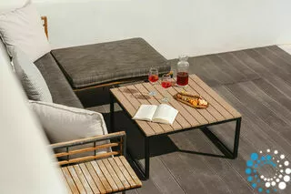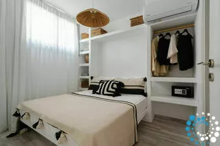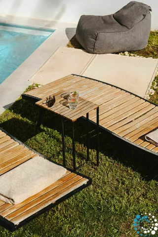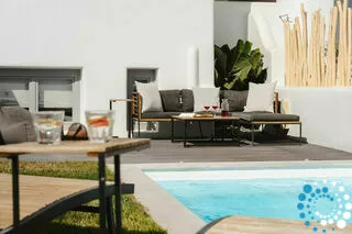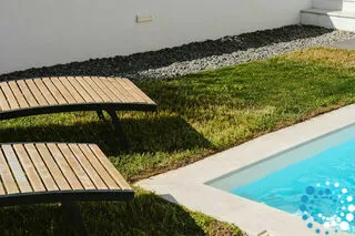 Outside, the villa offers a small private pool in the garden, perfect for cooling off in the sun or relaxing with a morning coffee or a refreshing drink. The outdoor space is also ideal for spending quality time with family and friends.