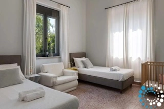 Villa Garyfalo offers a spacious, comfortable retreat, thoughtfully designed all on one level for effortless living. Ideal for families or groups of up to 8 guests, the villa features four well-appointed bedrooms—two with double beds and two with twin beds—ensuring a relaxing stay for everyone. A modern bathroom with two showers adds extra convenience, while the fully equipped kitchen provides everything you need to prepare delicious home-cooked meals.