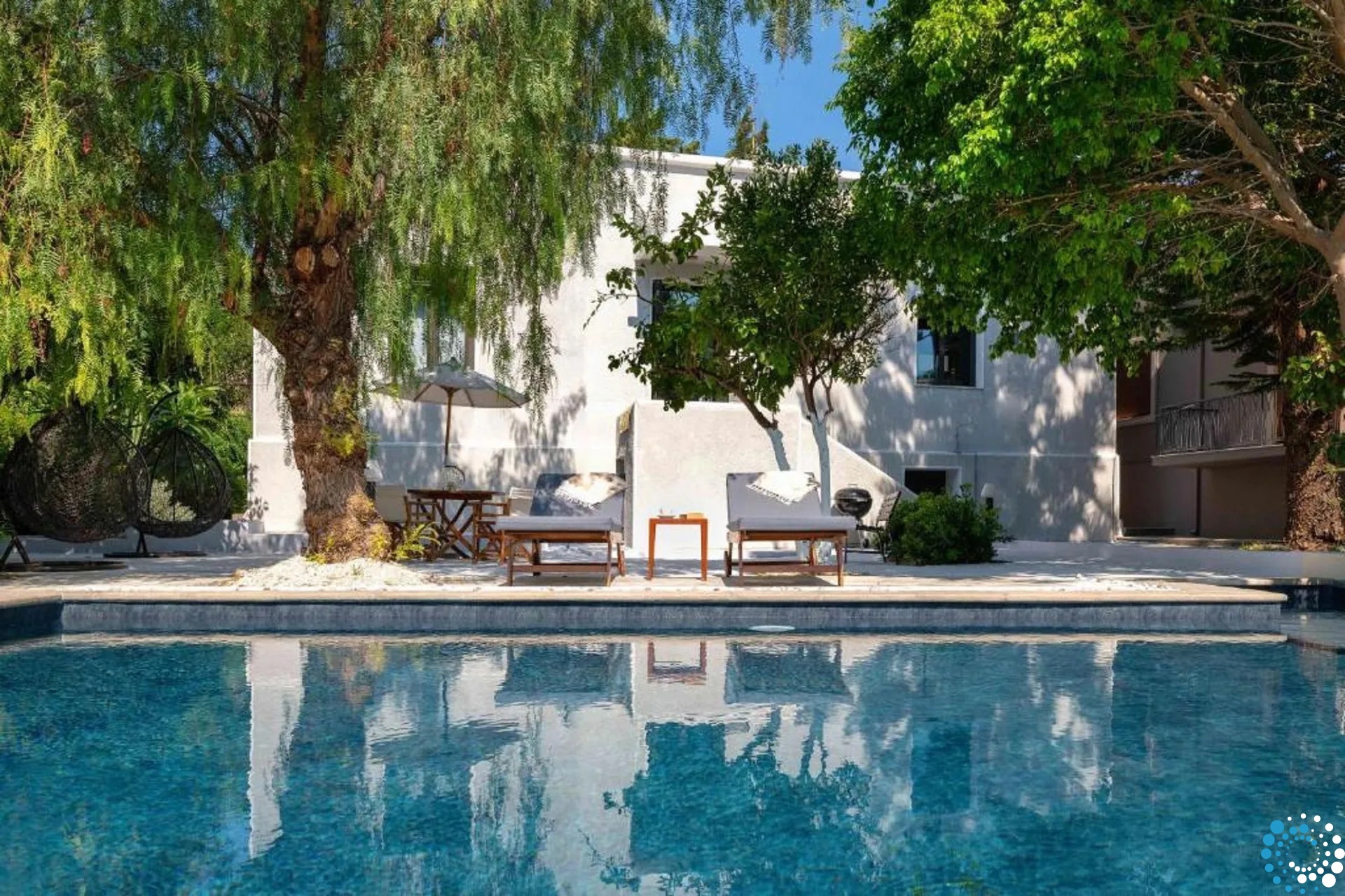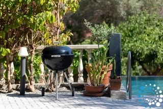 Step outside to your own private swimming pool, complete with sunbeds for lazy days under the Mediterranean sun. The inviting BBQ area, furnished with outdoor seating and a charcoal grill, creates the perfect atmosphere for memorable alfresco dining with family and friends.
