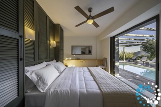 Spanning 180 m², this villa offers four bedrooms and can comfortably host up to eight guests. The thoughtfully designed layout balances shared living with personal privacy, clearly separating communal spaces from private areas.