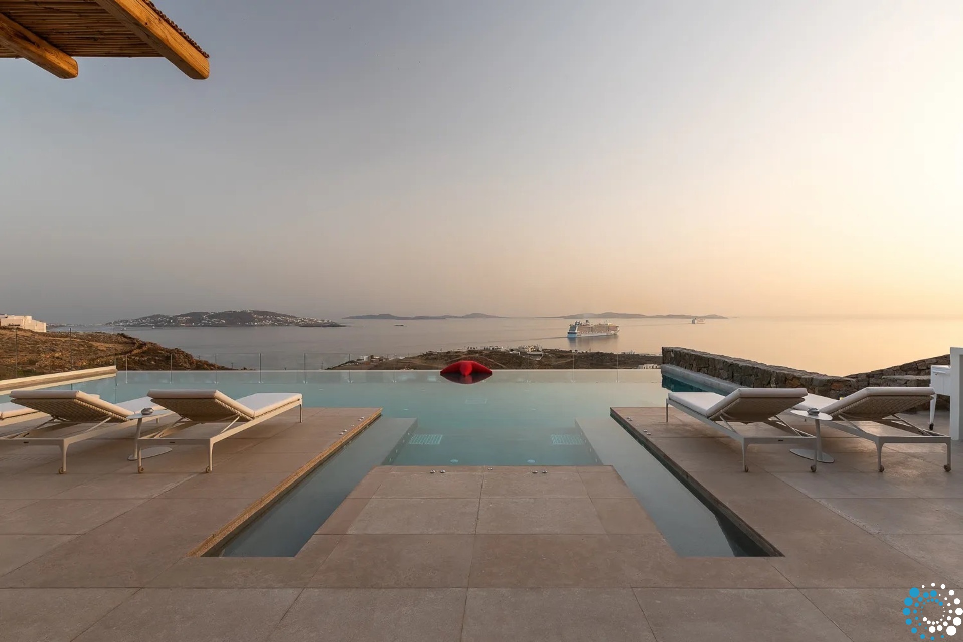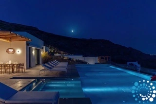 Nestled in the tranquil and exclusive region of Houlakia, Villa Heliotropion offers an extraordinary escape where contemporary luxury meets breathtaking natural beauty. With sweeping views of the Aegean Sea and easy access to the lively Mykonos Town, this villa is perfect for discerning travelers seeking a refined blend of privacy and indulgence. Perfectly positioned directly across from the sacred island of Delos, the villa provides a rare and privileged setting to admire its historic beauty while soaking in the magic of the horizon.