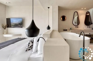 Villa Heliotropion comfortably accommodates guests across spacious and beautifully appointed bedrooms, each with a private en-suite bathroom. These serene retreats are designed for ultimate relaxation, featuring plush bedding, premium furnishings, and large windows that provide captivating sea or garden views. Bathrooms are finished with designer fixtures and stocked with Molton Brown amenities, offering a five-star experience.