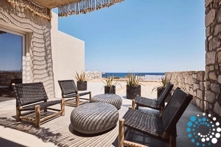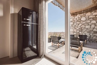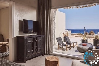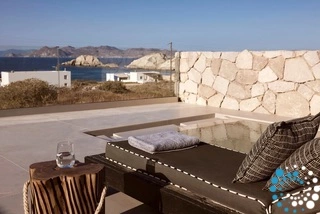 The design of Suite Serenity Milos embraces earthy tones, featuring natural elements such as wood, stone, and subtle decorative touches, all combined with top-notch amenities. Every detail is inspired by Cycladic tradition, creating a sense of tranquility, calm, and positive energy.