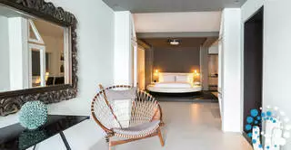 This is a striking boutique hotel, emerging through the graceful amalgam of timeless contemporary art, vintage ultra-chic pieces and ancient Cycladic touches that create a sensational, boldly diverse, yet visually balanced ambiance. The hotel has undergone clever retrofits and interior decoration alterations in all rooms and restaurants, adopting a new eye-catching style that ingeniously blends postmodern and classic with quirky hints. Under this concept, the hotel houses a great number of exceptional contemporary paintings and artworks, a series of exact replicas of Delian artifacts and sculptures, rare 17th and 18th century pieces, in addition to an impressive collection of Louis Vuitton trunks. Built in accordance with Cycladic architecture- where alluring whites meet playful shades of blue, taupe, and green as stone and wood gracefully pair with fine Pentelic marble- the 5-star Kivotos in Mykonos Greece is a rare hospitality gem that lies in the intersection of sophisticated opulence and discreet glamour.