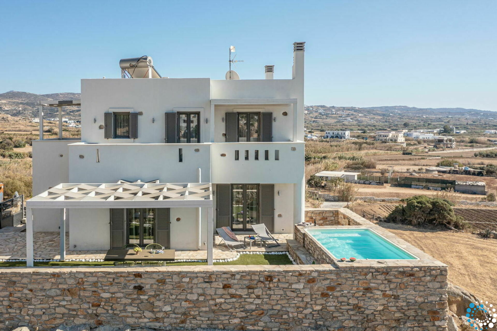 Occupying an excellent position in Aggidia—a settlement considered by many as a suburb of Naxos Town—and overlooking the countryside all the way to the beach, Villa Homely is luxuriously furnished, superbly decorated, and equipped to the highest standards.