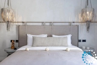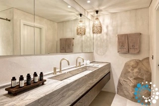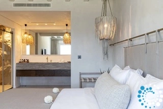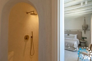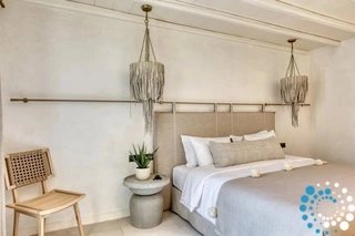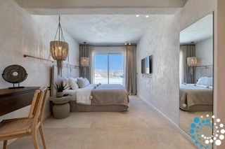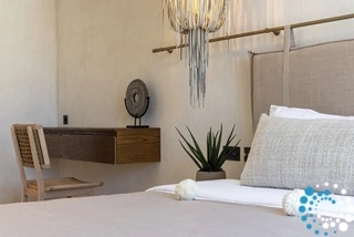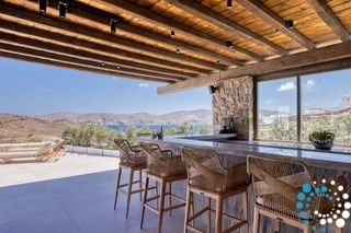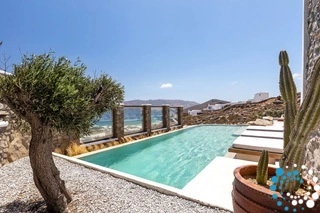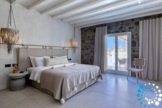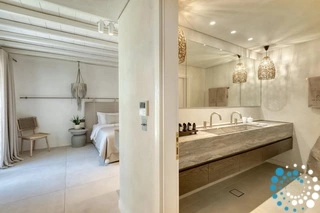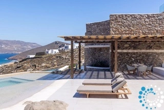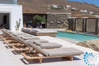 Our villa includes 7 suites of 2 persons each and is designed for luxury travelers. The villa has 2 pools with infinite sea views, a variety of indoor and outdoor lounging and gathering spaces, a spa, gym, bar and a professional kitchen all in a relaxed and intimate setting. The villa is ideal for large families or groups of friends and can each accommodate up to 14 guests.