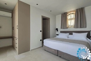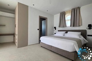 Step outside to your private oasis, where a sparkling swimming pool and jacuzzi await, accompanied by sun loungers and a comfortable seating area perfect for soaking up the Aegean sun. The outdoor gourmet kitchen with a dining area ensures unforgettable alfresco dinners beneath the Greek sky. Whether you’re relaxing by the pool or firing up the BBQ for a delicious meal, every moment is designed for indulgence. Fitness enthusiasts will appreciate access to the shared outdoor gym, while fun seekers can enjoy a ping pong table, mini golf, and a pool table. With its stunning design and prime location, Villa Intiko promises a truly memorable stay in Rhodes.