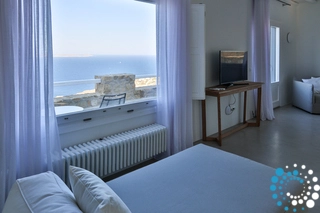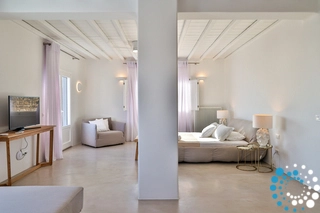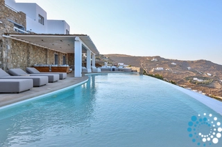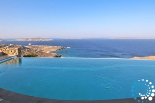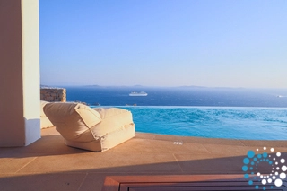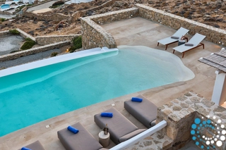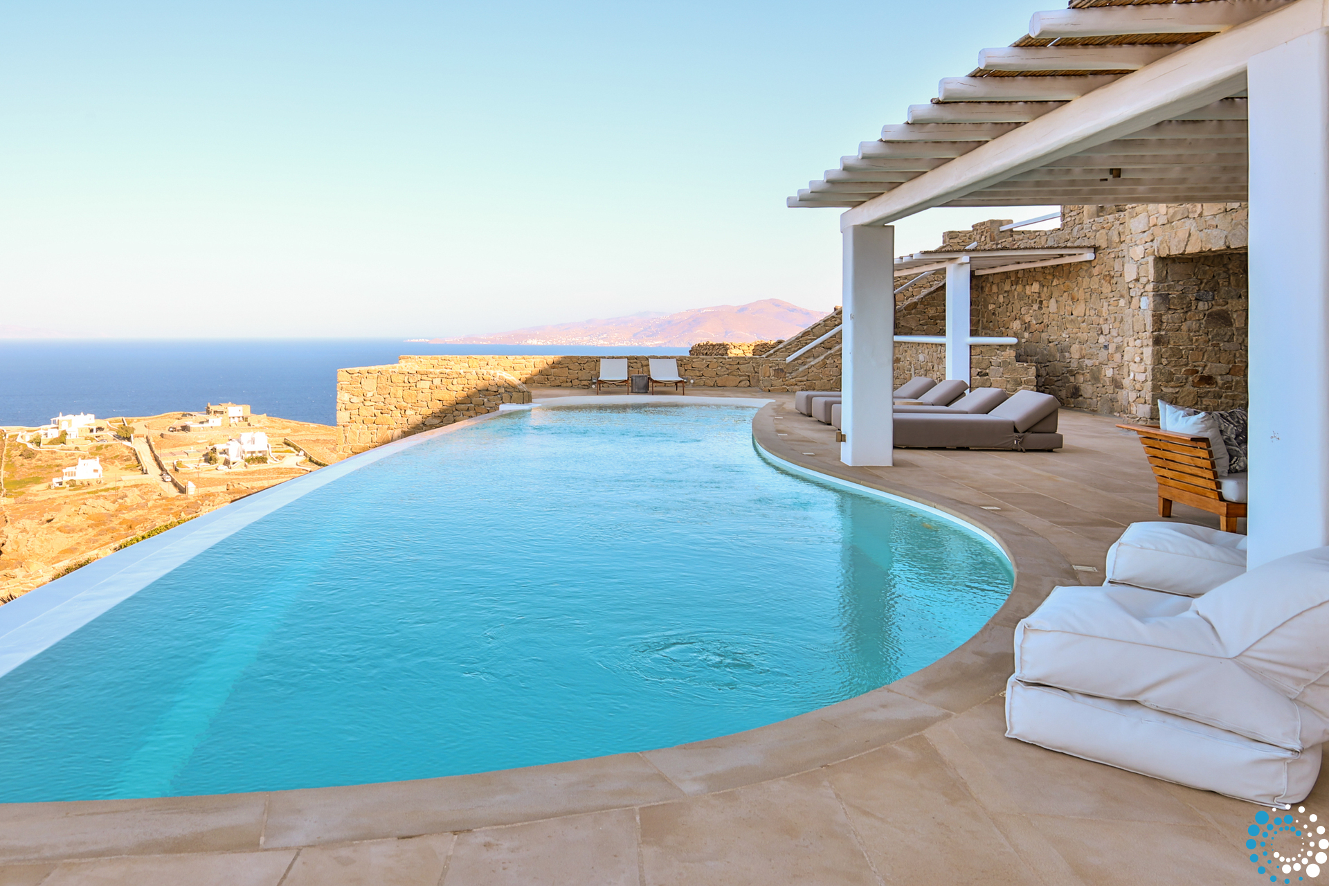 Outside, the crystal-clear heated pool invites you to bask in the Mykonian sun by day or unwind with a sunset swim by night. It’s the perfect centerpiece for lounging, entertaining, or simply soaking in the island’s beauty year-round.