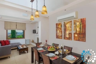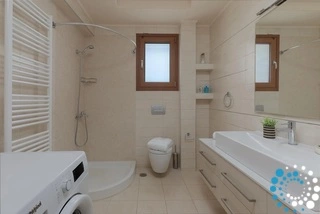 The villa includes two modern bathrooms, one with a refreshing shower and the other with a relaxing bathtub, ensuring comfort and convenience for all guests. Inside, you’ll find two cozy living rooms, each equipped with smart TVs, while free Wi-Fi is available throughout the property. The fully equipped kitchen and welcoming dining areas provide everything you need to prepare and enjoy meals together.