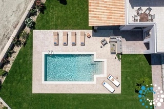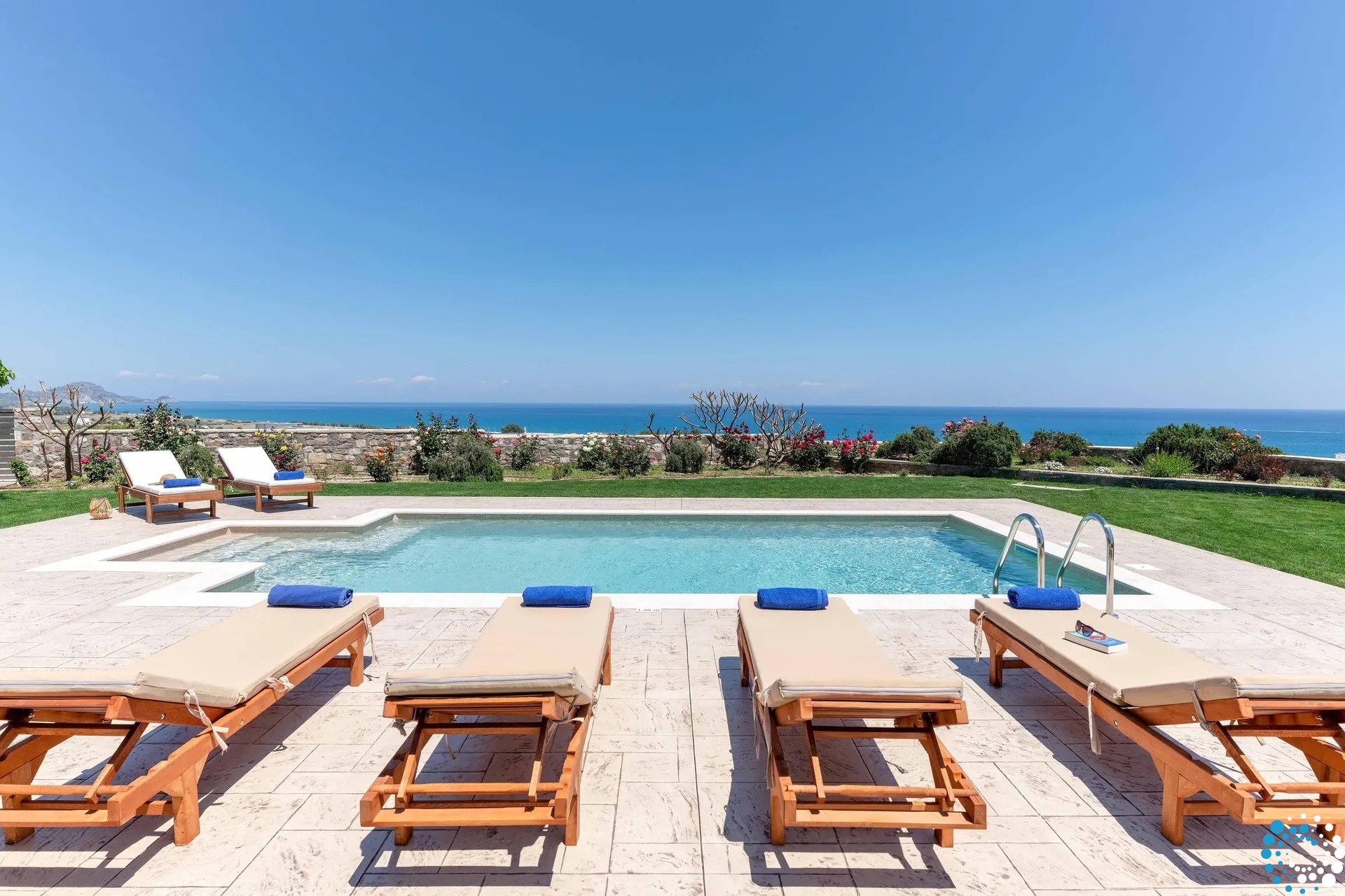Step into your own private oasis and enjoy the magnificent swimming pool, featuring hydromassage and comfortable sunbeds. The outdoor area also offers BBQ facilities and a shaded dining space, all surrounded by lush gardens—perfect for relaxing summer days and unforgettable evenings under the Rhodes sky.