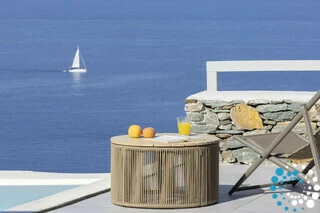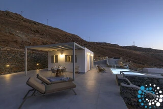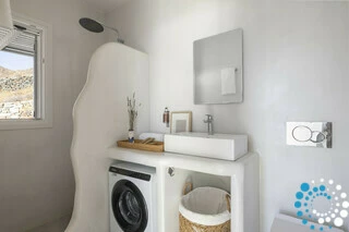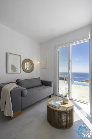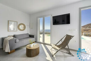 The interior is approximately 55 sq.m, comprising two bedrooms, a living room seamlessly connected to a fully equipped kitchen, and one bathroom. The villa is tastefully decorated with modern style, boasting BoConcept and Cocomat furnishings, as well as the latest electrical appliances. Conveniently located just 250 meters from the main asphalt public road, this is the ideal luxury retreat for an unforgettable vacation on one of the Cyclades’ most charming and accessible islands.