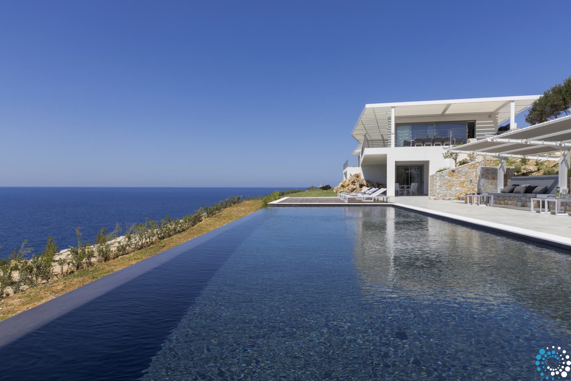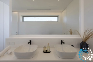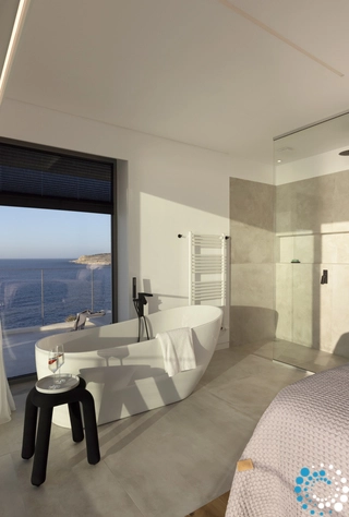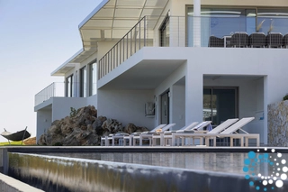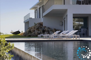 From your private retreat, enjoy breathtaking views that stretch to the horizon, where the deep blue sea meets the sky. The villa’s meticulously landscaped outdoor spaces are designed for complete relaxation, with sunbeds and umbrellas surrounding a stunning 16.2 m x 5 m infinity pool. Here, the line between nature and design fades, creating an immersive experience of exceptional beauty.