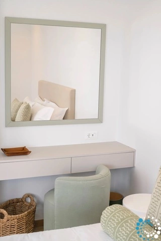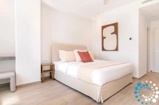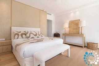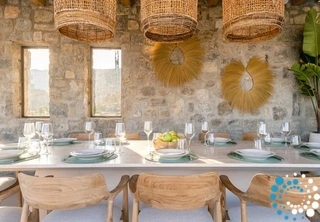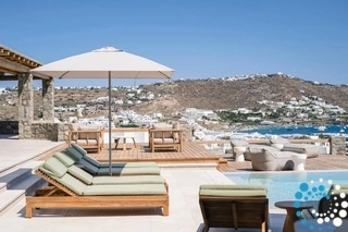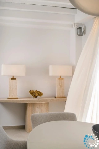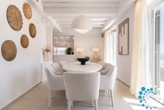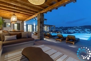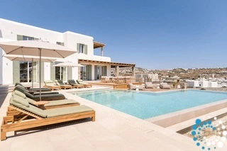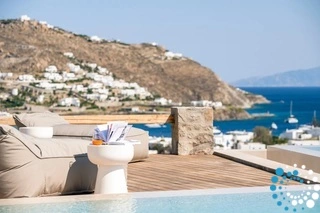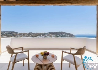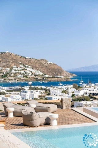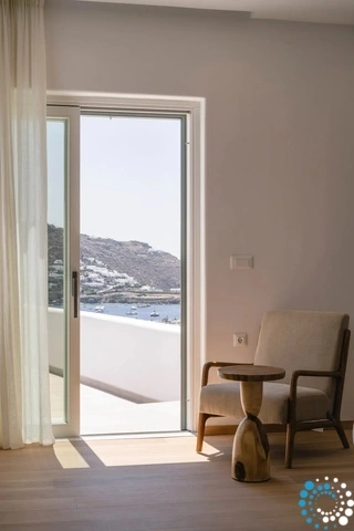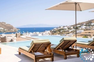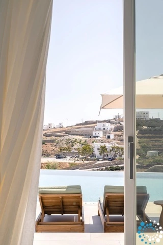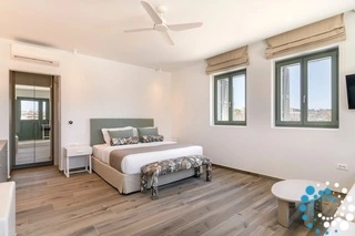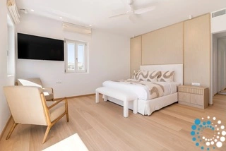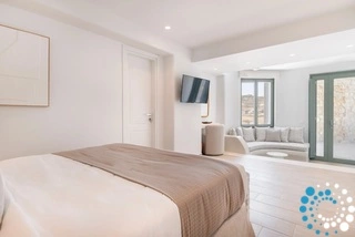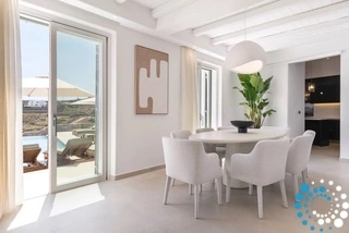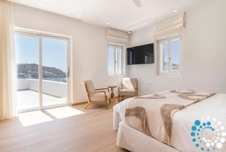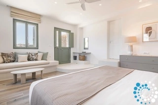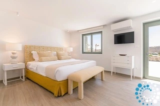 The villa features six beautifully appointed bedrooms, complemented by an additional auxiliary bedroom, offering generous space for privacy, comfort, and effortless relaxation. Surrounded by the natural beauty of Mykonos, Villa Koruphe invites you to unwind, recharge, and indulge in an unforgettable Mediterranean escape.