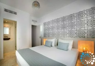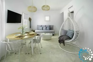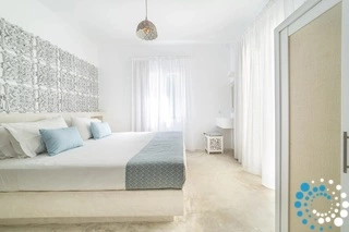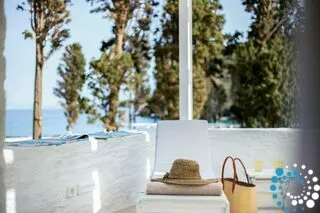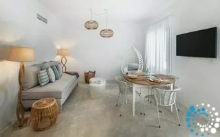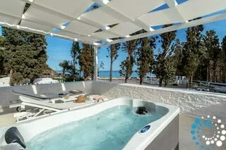Each features two spacious bedrooms, a cozy living room, a fully equipped kitchen, and a private outdoor terrace where you can unwind and soak in the serene garden views. The six double beds and three sofa beds ensure a restful stay, while six modern bathrooms with walk-in showers add a touch of luxury. Step outside to your private terraces with dining areas, or take the short stroll to the beach for a day in the sun. For the ultimate indulgence, each upper-floor veranda boasts its own Jacuzzi hot tub, offering a secluded retreat with panoramic views of the sparkling sea—a perfect blend of relaxation and seaside elegance.