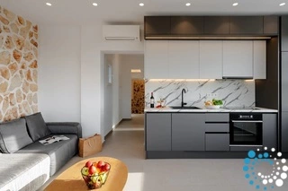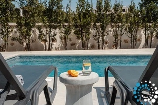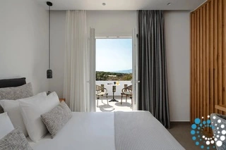 Each bedroom is appointed with a king-size bed, en-suite bathroom, satellite TV, desk, and air conditioning, ensuring a restful and carefree stay. Step onto your private balcony to soak in tranquil views of the Aegean Sea, where the gentle waves create the perfect soundtrack for relaxation.