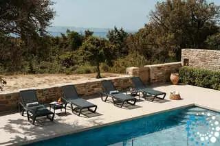 Nestled between golden sand dunes and a verdant cedar forest, Villa Kyraia offers an enchanting escape in Naxos, designed to blend comfort with nature’s serenity. Boasting 70 square meters of stylish interiors and 90 square meters of harmonious indoor-outdoor spaces, this retreat invites you to unwind in elegance.