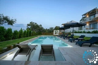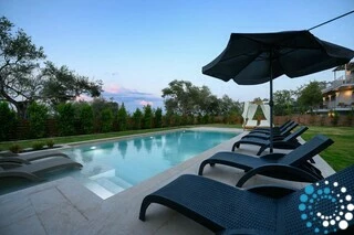 ExploreVilla Lamperi features a welcoming heated private pool that serves as a serene retreat for relaxation and enjoyment. Whether spending the day cooling off under the warm Corfu sun or unwinding in the evening atmosphere, the pool offers an ideal setting for leisure and comfort, complemented by elegant outdoor spaces designed for rest and social moments.