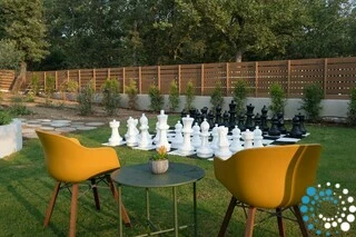Privacy is a defining feature of the villa, creating a secluded sanctuary where guests can fully relax and recharge. Outdoor amenities further enhance the experience, including a heated swimming pool measuring seven by four meters with a depth of 1.70 meters, sun loungers with umbrellas, a private jacuzzi, a barbecue area, and comfortable modern outdoor furniture. There is also a covered terrace with a dining area, private parking, board games, gym equipment, and a fully equipped kitchen featuring modern appliances such as an oven, stove, fridge, freezer, dishwasher, coffee maker, and toaster. Sheets and towels are provided for all guests, ensuring a seamless and comfortable stay.