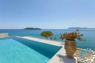 Experience the ultimate coastal getaway with direct access to the Ionian Sea from your own private beach, or take in the stunning views from the infinity pool. Perfect for large families or groups of friends, this inviting property comfortably accommodates up to six guests. Spanning 120m² of beautifully designed indoor space and 200m² of outdoor living, it offers a spacious outdoor dining area with BBQ facilities, and a 35m² infinity pool where you can create unforgettable moments of joy with your loved ones.