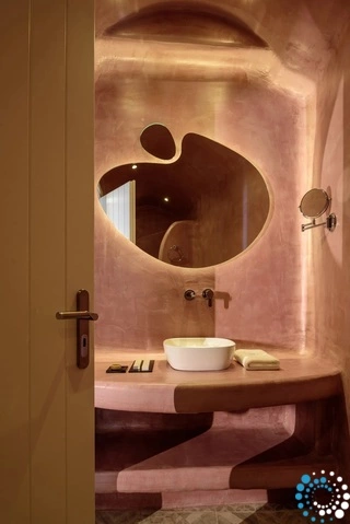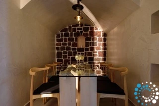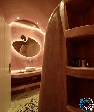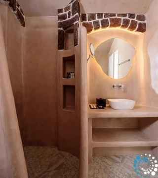 There is also a dug-into-the-rock dining room and a bathroom with a built shower. For sure the villa is a perfect blend of modern and local architecture.